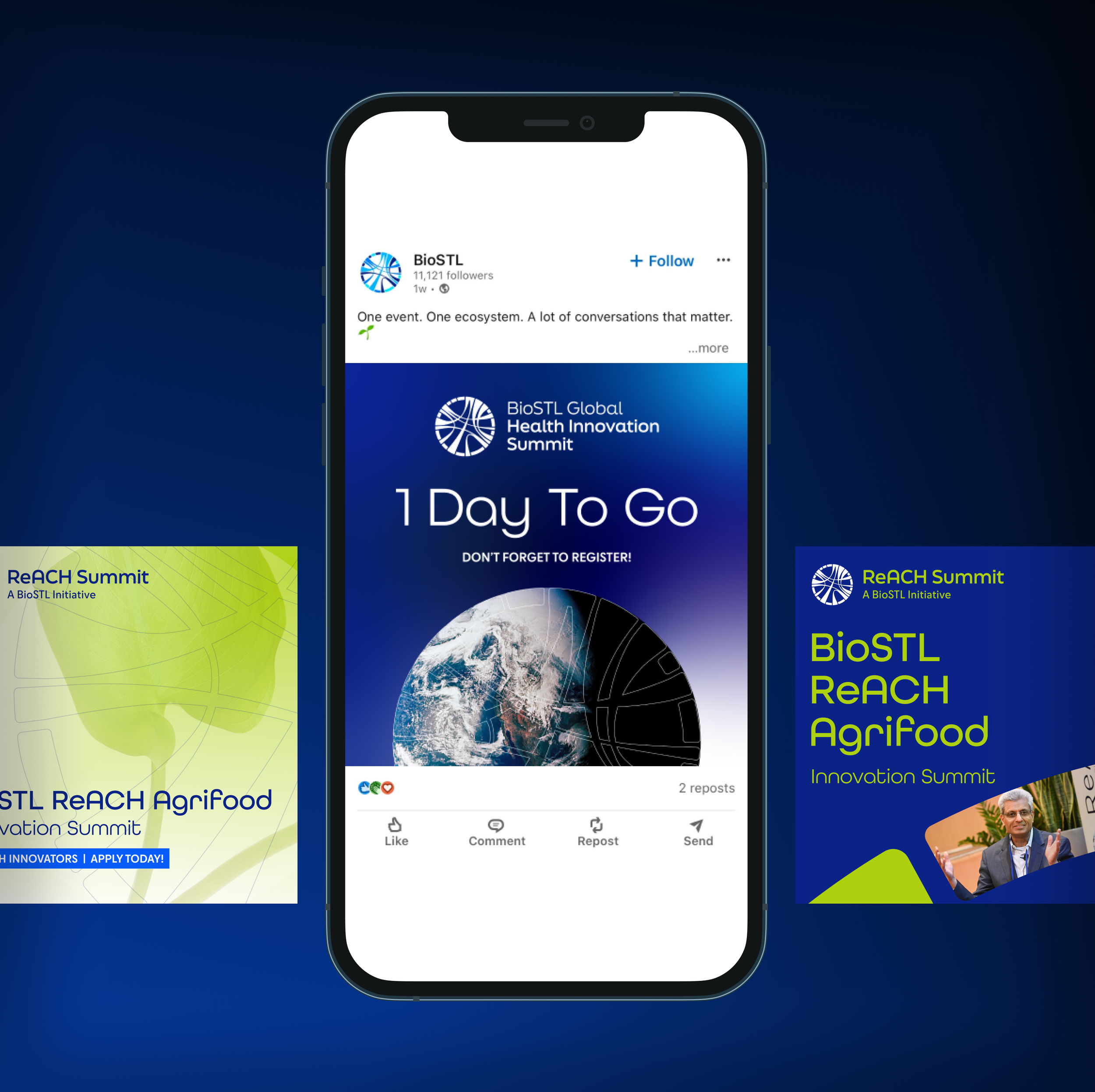 In parallel with the website, I designed social and newsletter systems to extend BioSTL’s story into faster, lower-attention environments.